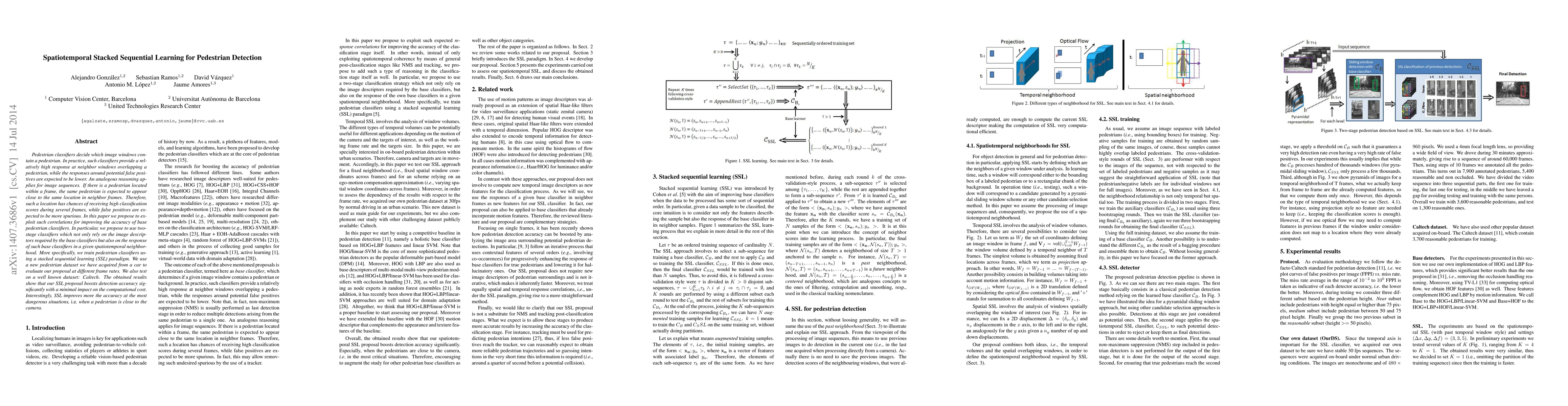 This paper proposes a new approach to pedestrian detection using spatiotemporal stacked sequential learning, which improves accuracy at detecting pedestrians in close proximity to the camera.