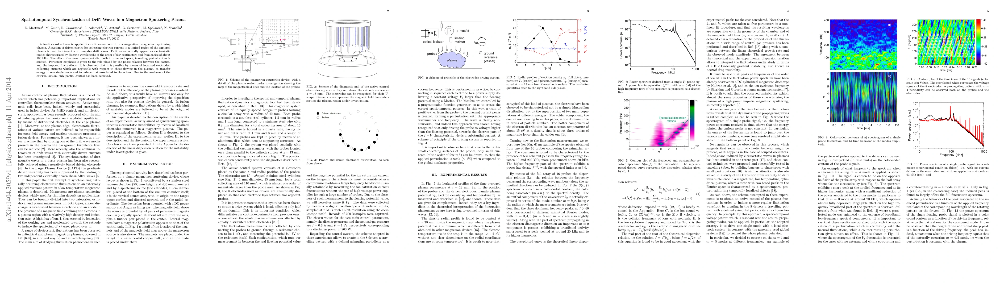 Researchers developed a control method for drift waves in a magnetron sputtering plasma using localized electrodes that can selectively transfer energy to one mode, reducing the energy associated with other modes. Partial control was achieved due to the weakness of the external action.