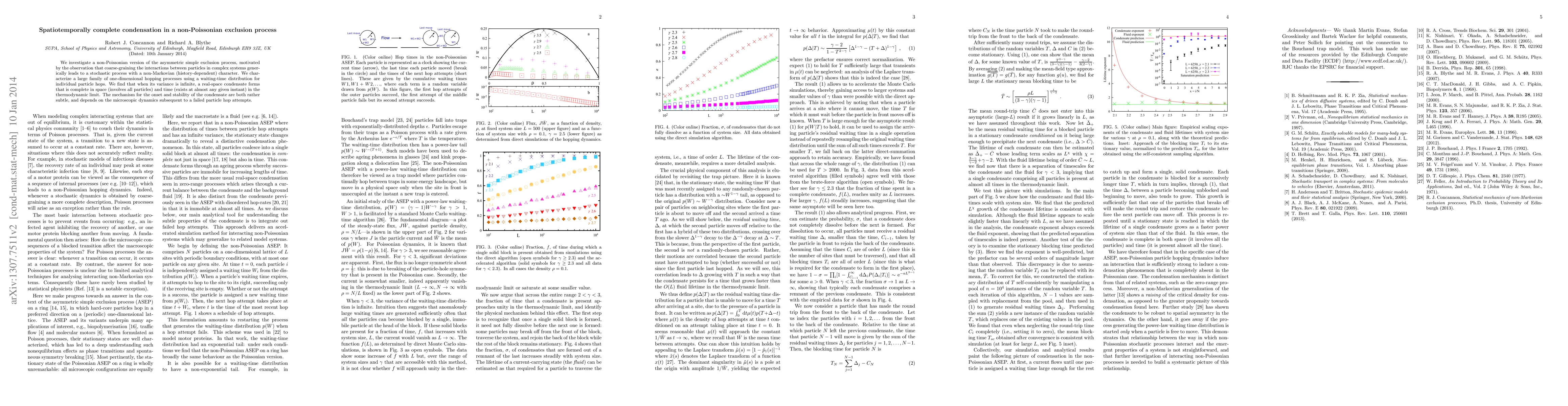 We investigate a non-Poissonian version of the asymmetric simple exclusion process, motivated by the observation that coarse-graining the interactions between particles in complex systems generically leads to a stochastic process with a non-Markovian (history-dependent) character. We characterize a large family of one-dimensional hopping processes using a waiting-time distribution for individual particle hops. We find that when its variance is infinite, a real-space condensate forms that is complete in space (involves all particles) and time (exists at almost any given instant) in the thermodynamic limit. The mechanism for the onset and stability of the condensate are both rather subtle, and depends on the microscopic dynamics subsequent to a failed particle hop attempts.