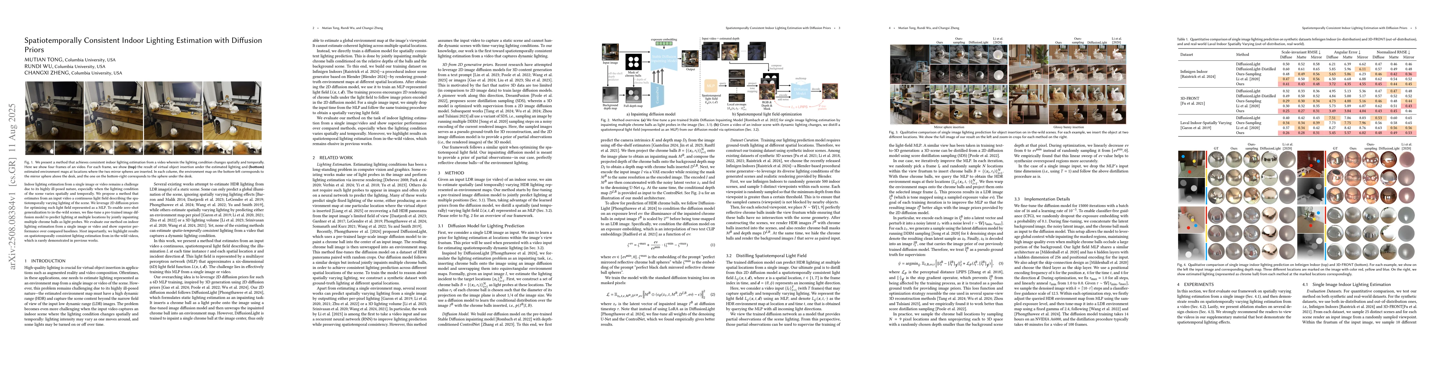 Indoor lighting estimation from a single image or video remains a challenge due to its highly ill-posed nature, especially when the lighting condition of the scene varies spatially and temporally. We propose a method that estimates from an input video a continuous light field describing the spatiotemporally varying lighting of the scene. We leverage 2D diffusion priors for optimizing such light field represented as a MLP. To enable zero-shot generalization to in-the-wild scenes, we fine-tune a pre-trained image diffusion model to predict lighting at multiple locations by jointly inpainting multiple chrome balls as light probes. We evaluate our method on indoor lighting estimation from a single image or video and show superior performance over compared baselines. Most importantly, we highlight results on spatiotemporally consistent lighting estimation from in-the-wild videos, which is rarely demonstrated in previous works.