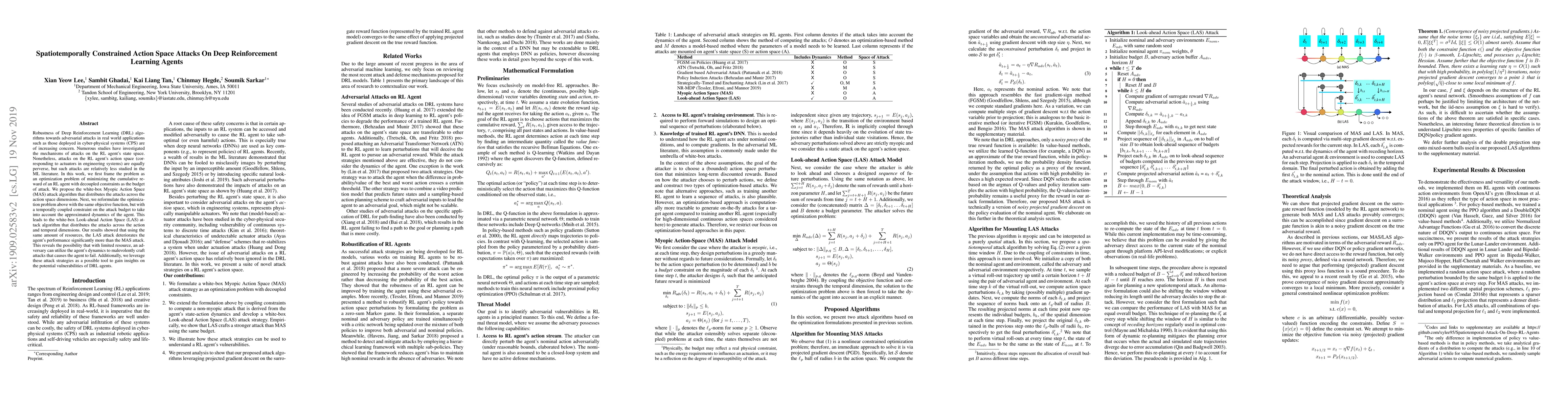 This paper investigates attacks on the action space of Deep Reinforcement Learning (DRL) agents, proposing two novel attack algorithms: Myopic Action Space (MAS) and Look-ahead Action Space (LAS). The LAS attack, which considers temporal constraints, demonstrates a more severe impact on agent performance, highlighting potential vulnerabilities in DRL agents.