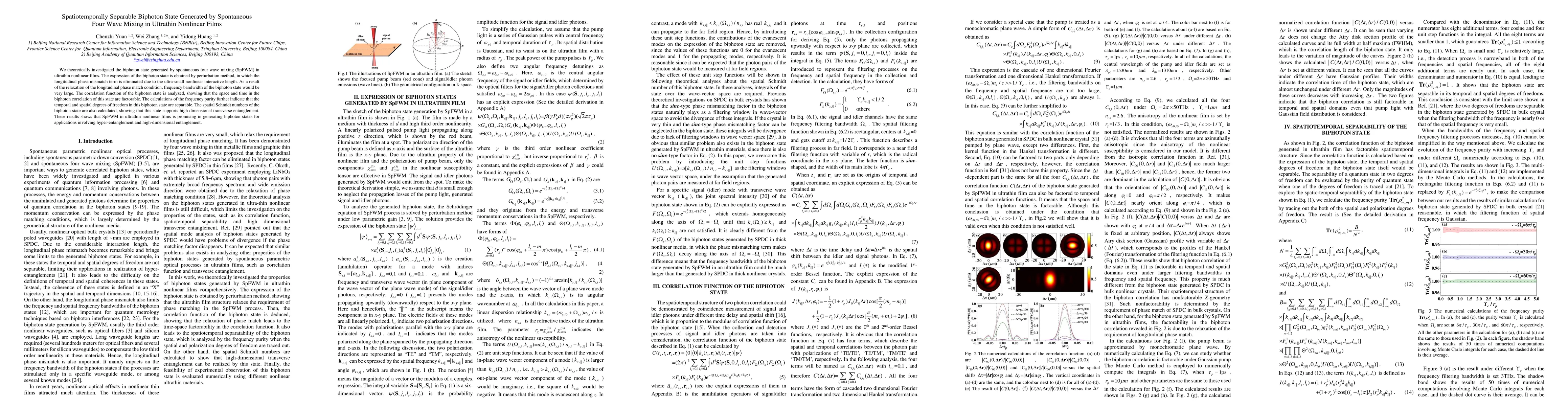 This paper theoretically explores biphoton states generated via spontaneous four wave mixing in ultrathin nonlinear films, demonstrating large frequency bandwidth and spatiotemporal separability. The study highlights the potential of this method for generating high-dimensional entangled states for advanced quantum applications.