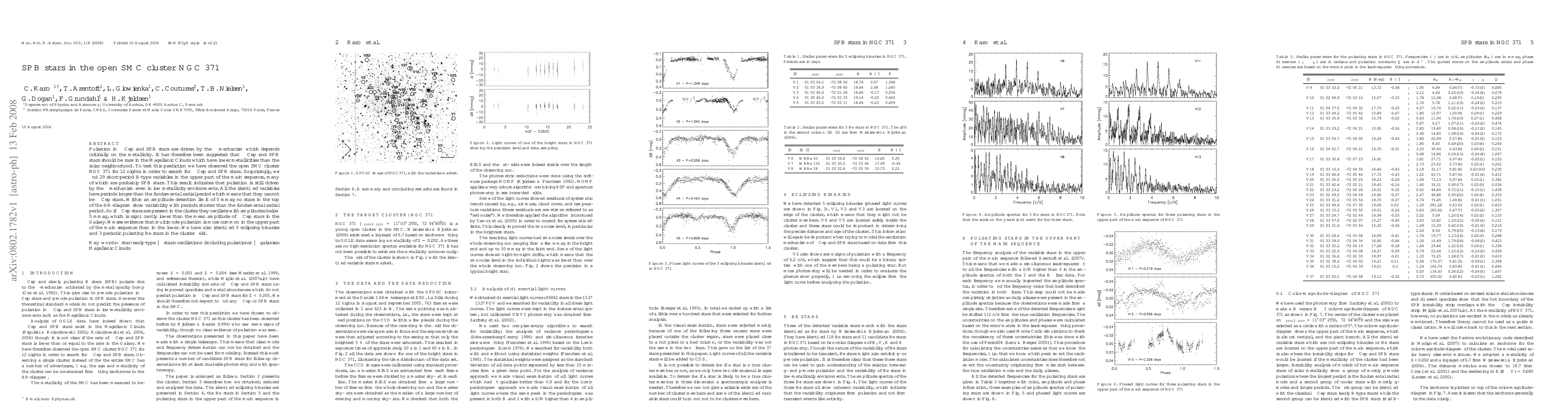 The study of the open SMC cluster NGC 371 reveals 29 short-period B-type variables, suggesting that the kappa mechanism drives pulsation in low metallicity environments, contrary to predictions. No stars with periods shorter than the fundamental radial period were found, indicating potential low-amplitude beta Cep stars if present.