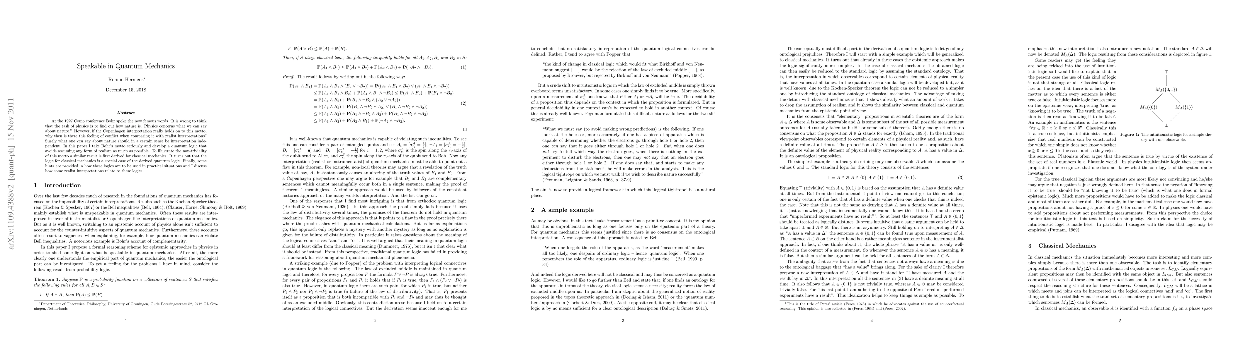 At the 1927 Como conference Bohr spoke the now famous words "It is wrong to think that the task of physics is to find out how nature is. Physics concerns what we can say about nature." However, if the Copenhagen interpretation really holds on to this motto, why then is there this feeling of conflict when comparing it with realist interpretations? Surely what one can say about nature should in a certain sense be interpretation independent. In this paper I take Bohr's motto seriously and develop a quantum logic that avoids assuming any form of realism as much as possible. To illustrate the non-triviality of this motto a similar result is first derived for classical mechanics. It turns out that the logic for classical mechanics is a special case of the derived quantum logic. Finally, some hints are provided in how these logics are to be used in practical situations and I discuss how some realist interpretations relate to these logics.
