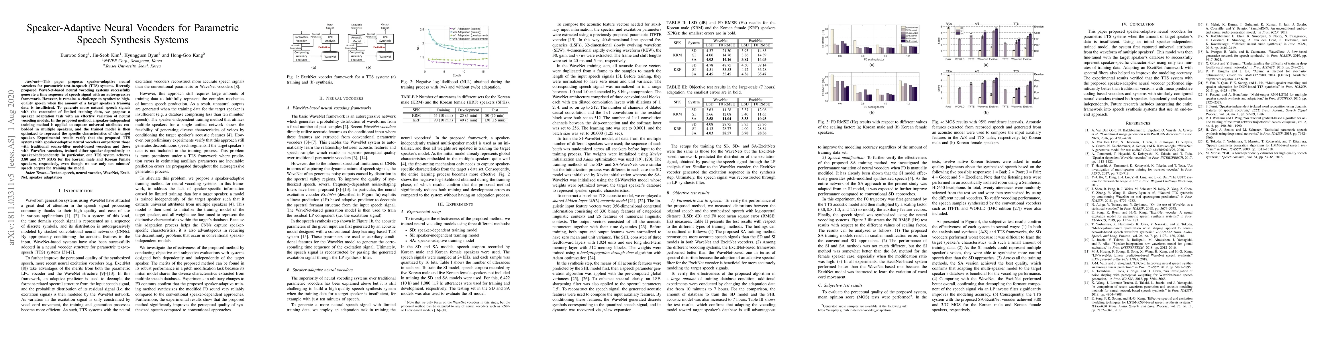 This paper proposes speaker-adaptive neural vocoders to improve the quality of parametric text-to-speech systems, especially with limited training data. The method combines speaker-independent training with targeted adaptation to specific speakers, achieving higher naturalness and better performance than traditional and other neural vocoding models.