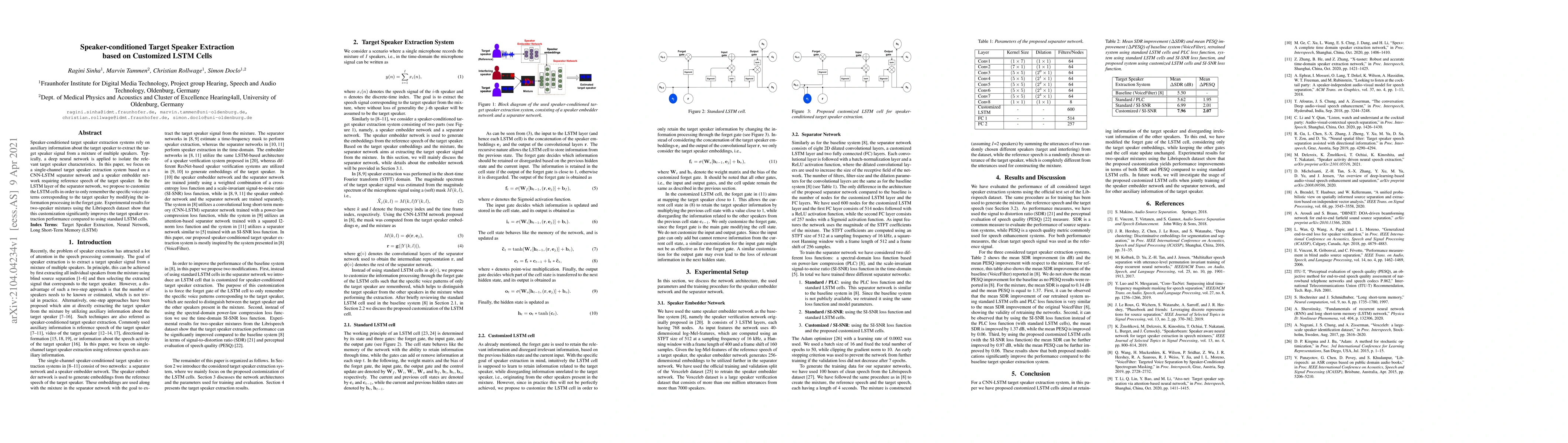 This paper proposes a customized LSTM-based system for extracting a target speaker from a mixture of audio signals, using a CNN-LSTM separator and a speaker embedder. The LSTM cells are tailored to focus on the target speaker's voice patterns, enhancing extraction performance, as demonstrated by improved results on the Librispeech dataset.