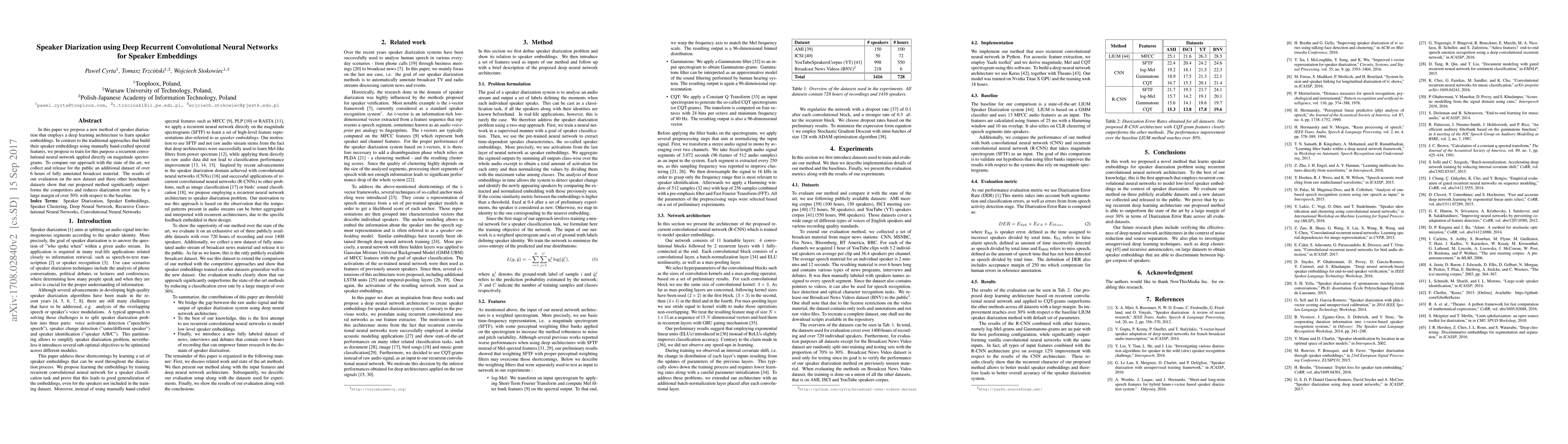 This paper introduces a novel speaker diarization method using deep recurrent convolutional neural networks for learning speaker embeddings directly from magnitude spectrograms, outperforming traditional methods based on hand-crafted features. The authors release a new dataset and demonstrate a 30% reduction in diarization error compared to baselines.