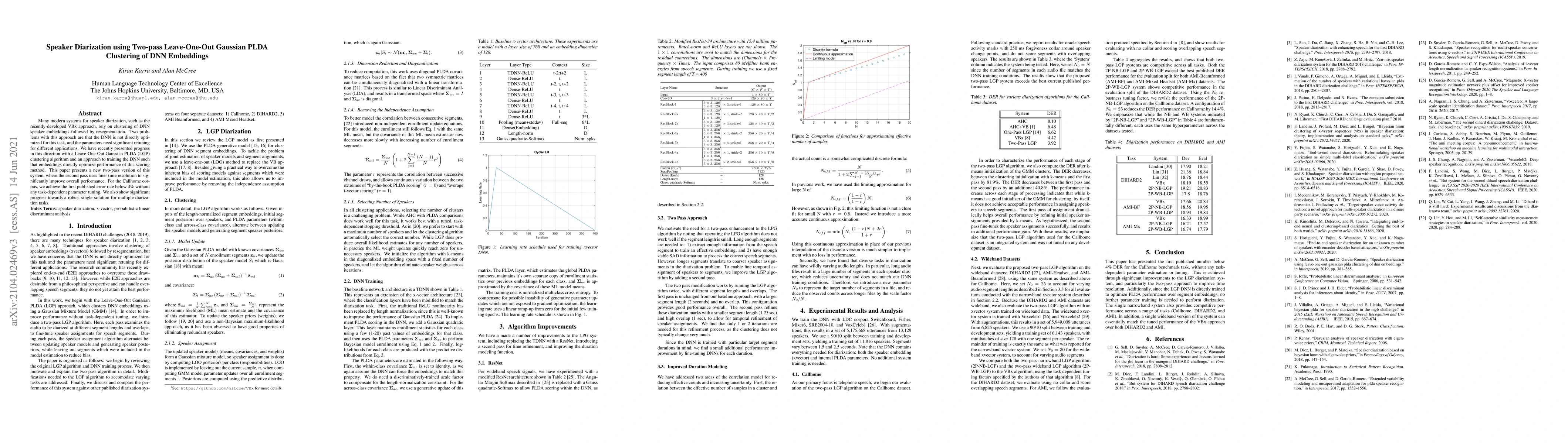 This paper introduces a two-pass Leave-One-Out Gaussian PLDA clustering method for speaker diarization using DNN embeddings, achieving an error rate below 4% on the Callhome corpus without task-specific parameter tuning, and demonstrating progress towards a universal solution for various diarization tasks.