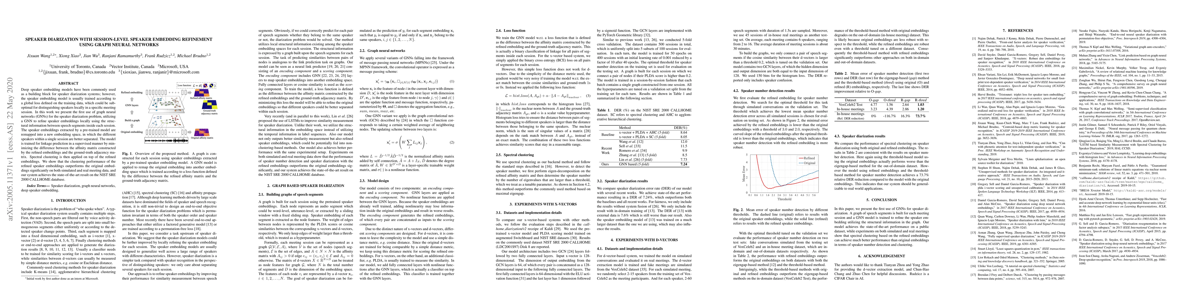 This paper proposes using graph neural networks (GNNs) to refine speaker embeddings for speaker diarization, improving local speaker separation within meeting sessions. The refined embeddings achieve better clustering performance and state-of-the-art results on the NIST SRE 2000 CALLHOME database.