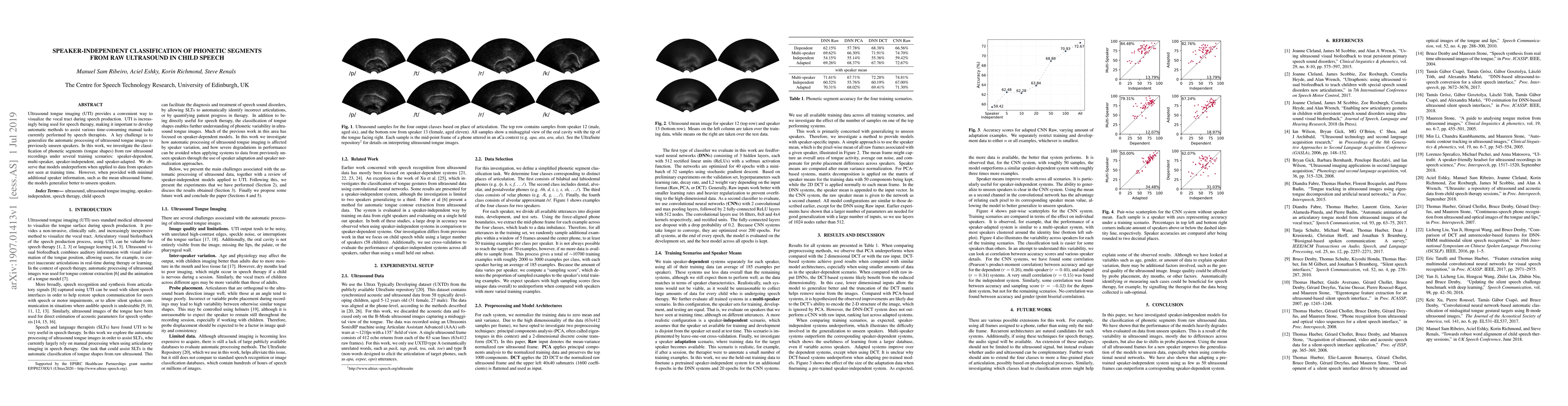 This paper investigates automatic classification of phonetic segments from raw ultrasound tongue images, focusing on speaker-independent methods. It finds that models struggle with unseen speakers but show improved generalization when provided with minimal speaker-specific information, like the mean ultrasound frame.