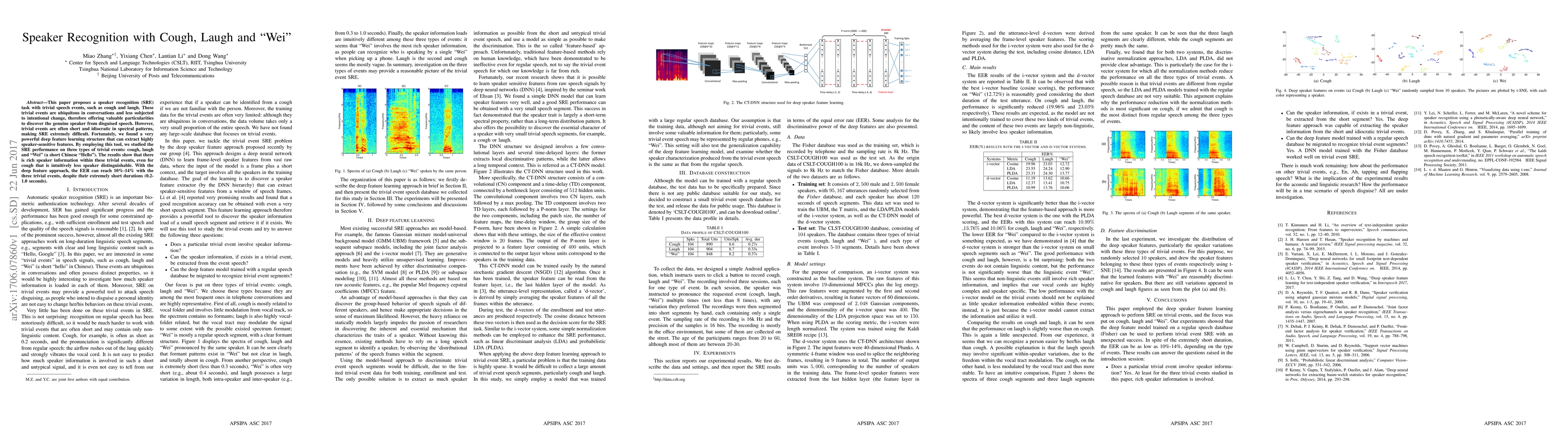 Researchers developed a speaker recognition system that can accurately identify speakers even when they're laughing or coughing, with an error rate of 10-14%.