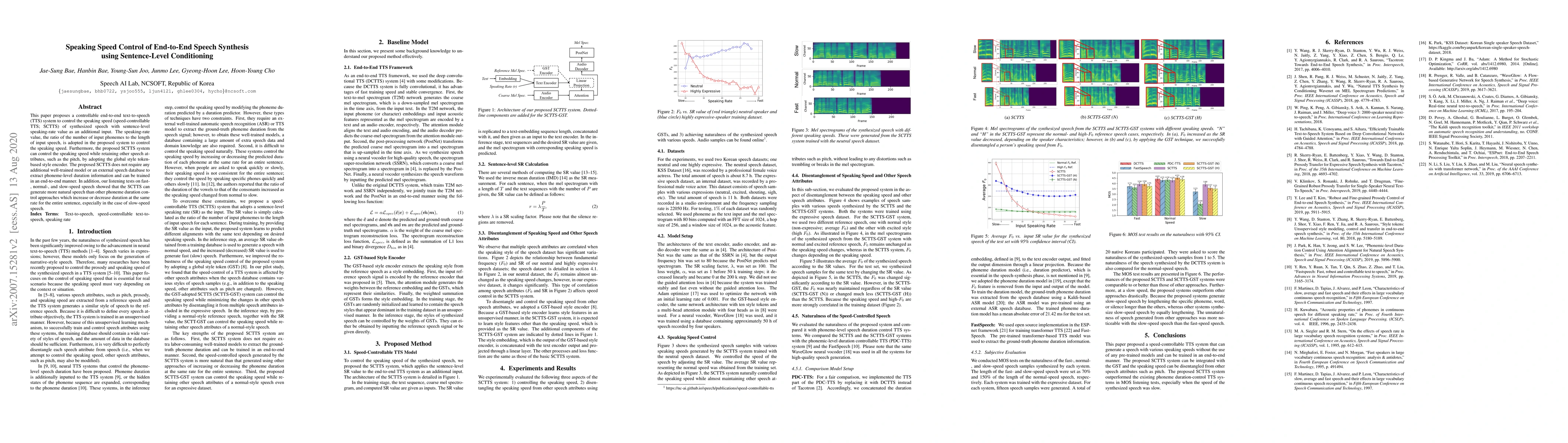 This paper introduces a controllable end-to-end text-to-speech system that uses sentence-level speaking-rate values to adjust the speaking speed while preserving other attributes like pitch. The system achieves this without requiring additional trained models or external databases.