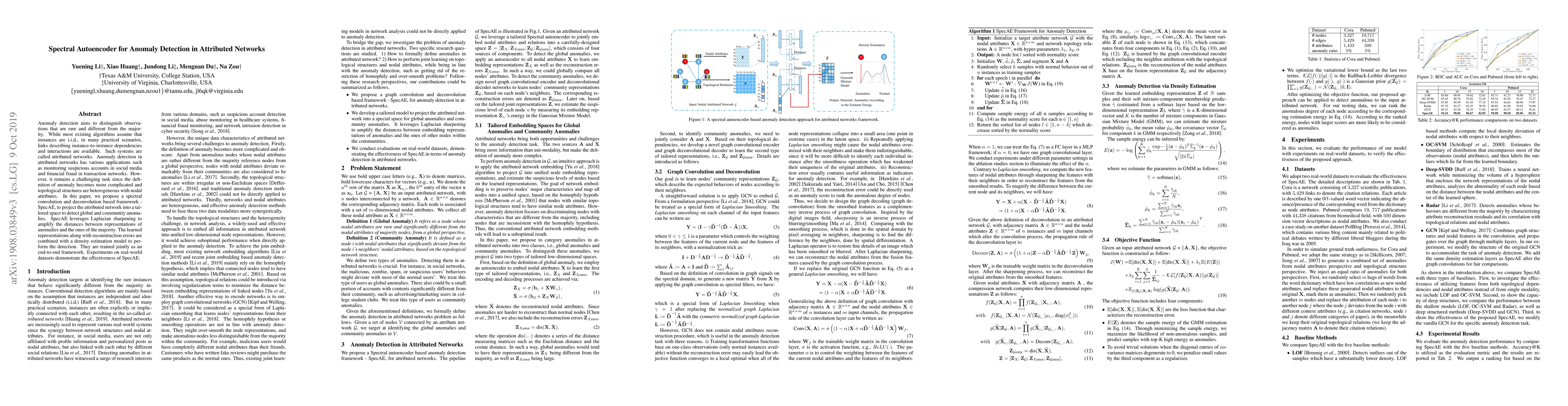 This paper proposes SpecAE, a spectral autoencoder framework for detecting anomalies in attributed networks by leveraging spectral convolution and deconvolution. It uses Laplacian sharpening to enhance anomaly detection and combines learned representations with reconstruction errors for effective anomaly identification.