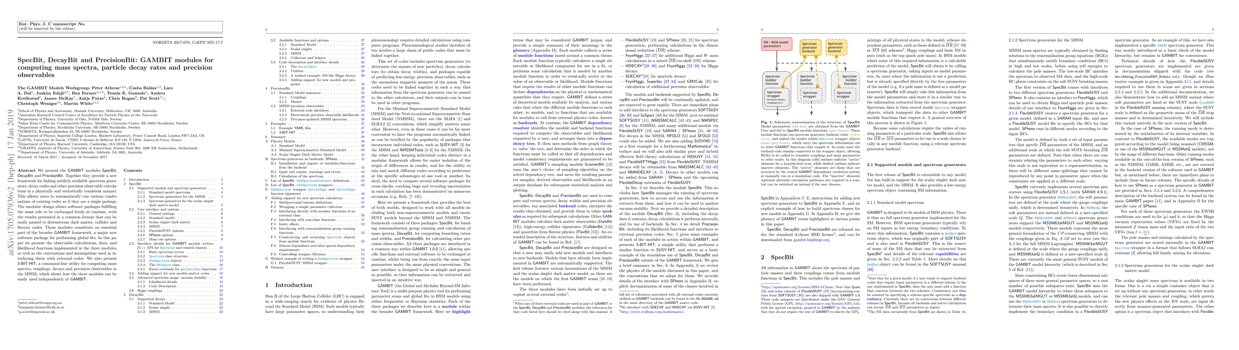 This paper introduces SpecBit, DecayBit, and PrecisionBit, three GAMBIT modules for computing mass spectra, decay rates, and precision observables in particle physics. These modules enable consistent and automated use of various external codes within a unified framework, facilitating global fits and data analysis in dark matter, collider, and flavor physics.