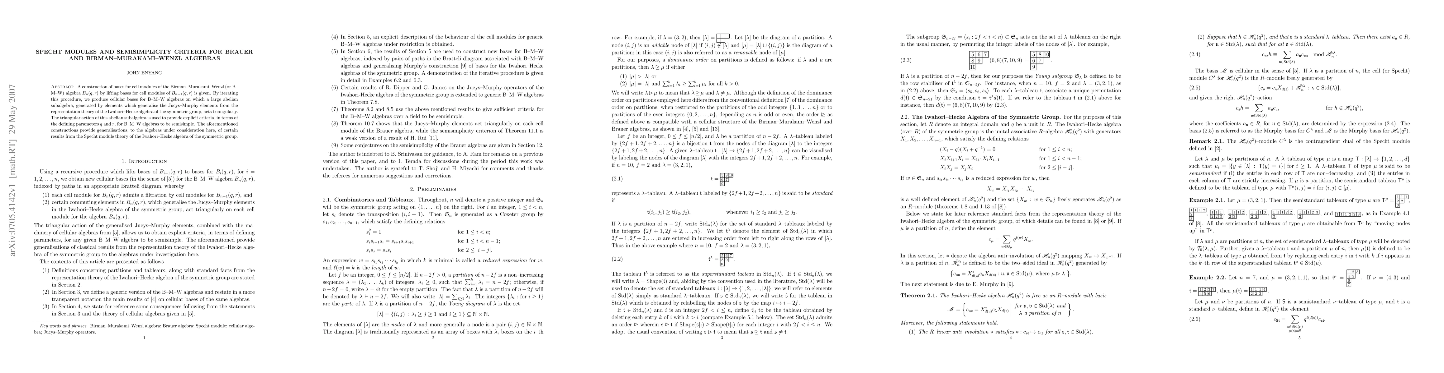 This paper constructs cellular bases for Birman-Murakami-Wenzl algebras by lifting bases from smaller algebras and shows that a large abelian subalgebra acts triangularly. It provides explicit semisimplicity criteria for these algebras based on their defining parameters, generalizing results from Specht module theory.
