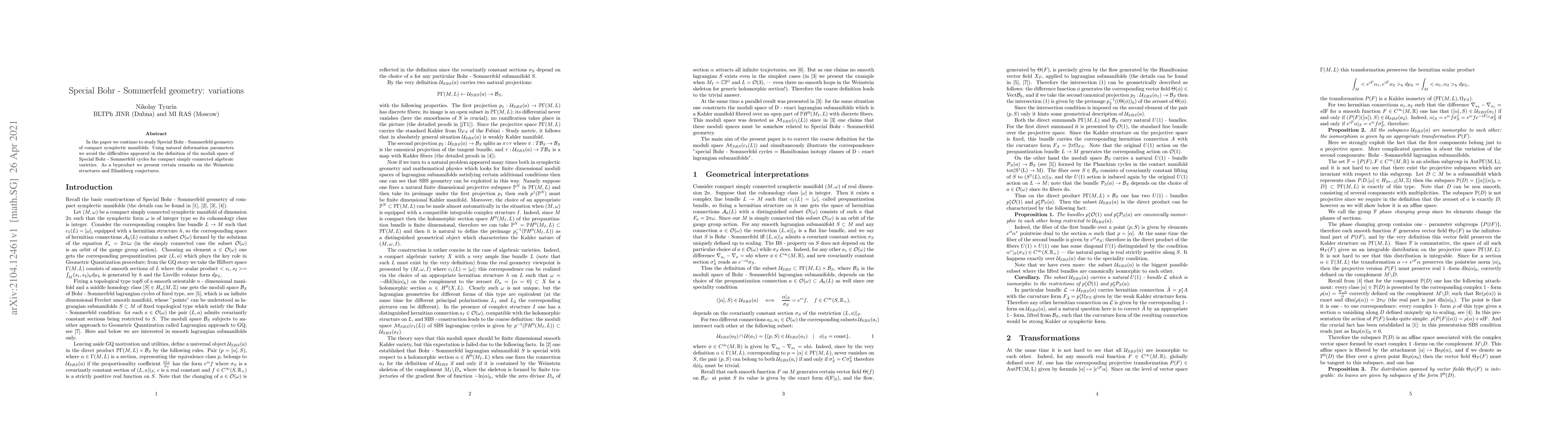This paper explores Special Bohr-Sommerfeld geometry on compact symplectic manifolds, addressing definition challenges for moduli spaces of cycles through deformation parameters. It also discusses implications for Weinstein structures and Eliashberg conjectures.