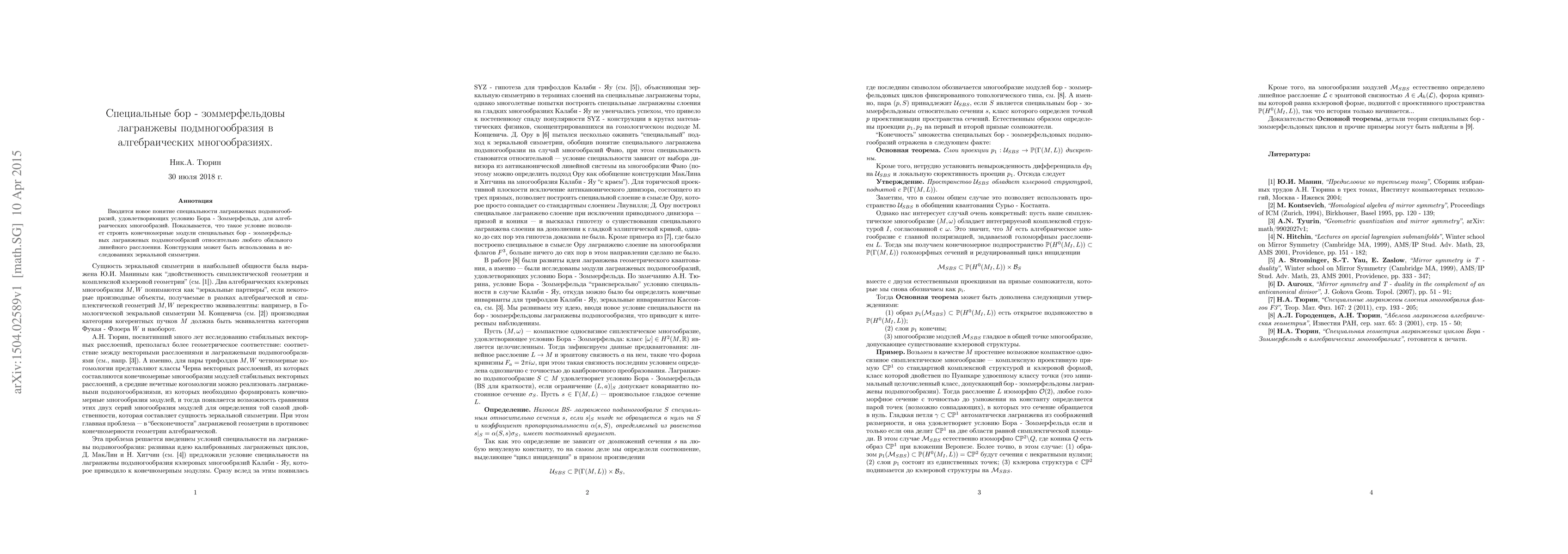 This paper introduces a new concept of speciality for Bohr-Sommerfeld Lagrangian submanifolds, leading to the construction of finite dimensional algebraic moduli spaces from ample line bundles in algebraic varieties, with applications in both Geometric Quantization and Mirror Symmetry.