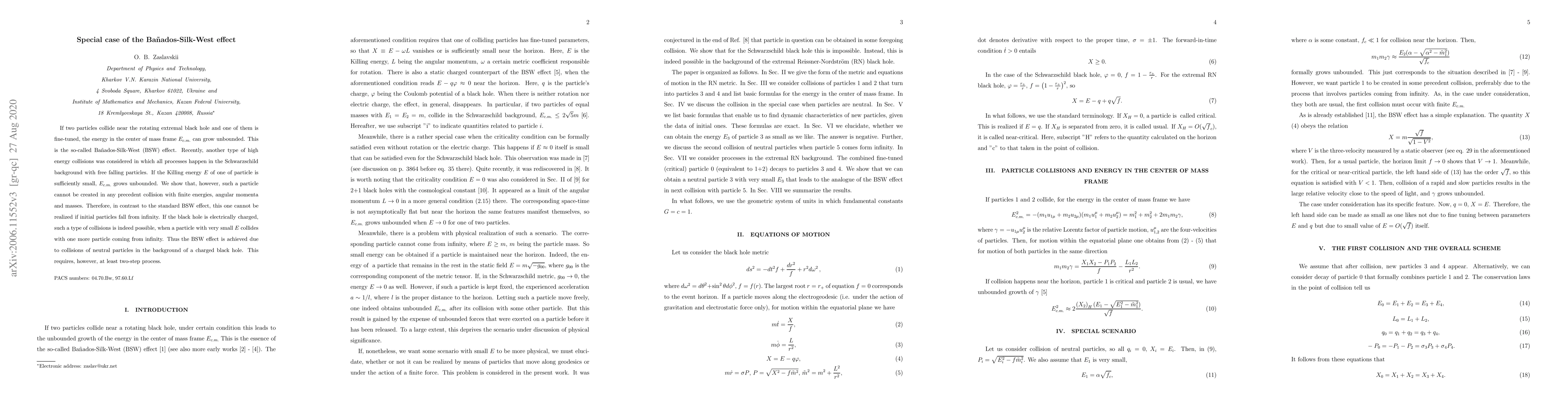 If two particles collide near the rotating extremal black hole and one of them is fine-tuned, the energy in the center of mass frame $E_{c.m.}$ can grow unbounded. This is the so-called Ba\~{n}ados-Silk-West (BSW) effect. Recently, another type of high energy collisions was considered in which all processes happen in the Schwarzschild background with free falling particles. If the Killing energy $E$ of one of particle is sufficiently small, $E_{c.m.}$ grows unbounded. We show that, however, such a particle cannot be created in any precedent collision with finite energies, angular momenta and masses. Therefore, in contrast to the standard BSW effect, this one cannot be realized if initial particles fall from infinity. If the black hole is electrically charged, such a type of collisions is indeed possible, when a particle with very small $E$ collides with one more particle coming from infinity. Thus the BSW effect is achieved due to collisions of neutral particles in the background of a charged black hole. This requires, however, at least two-step process.