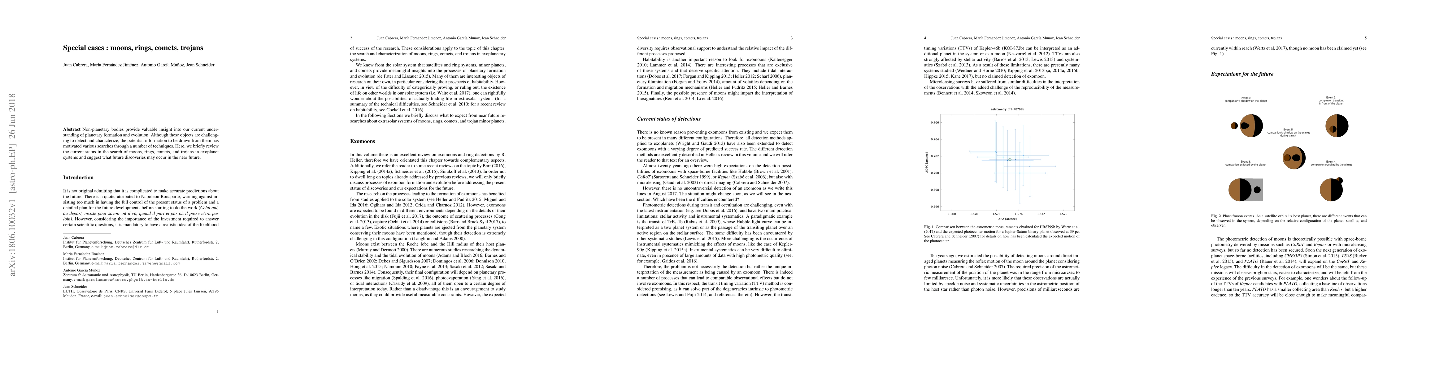Non-planetary bodies provide valuable insight into our current under- standing of planetary formation and evolution. Although these objects are challeng- ing to detect and characterize, the potential information to be drawn from them has motivated various searches through a number of techniques. Here, we briefly review the current status in the search of moons, rings, comets, and trojans in exoplanet systems and suggest what future discoveries may occur in the near future.