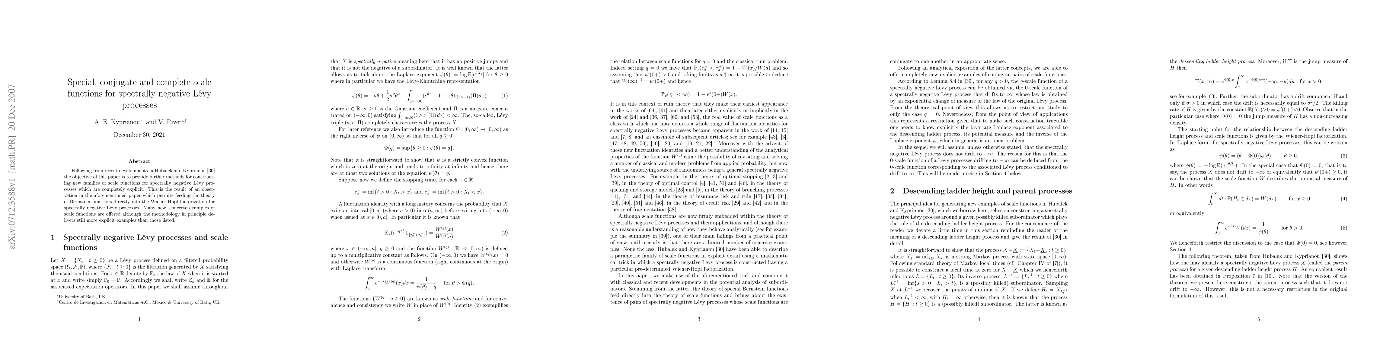 This paper develops new explicit scale functions for spectrally negative Lévy processes, leveraging recent advances by Hubalek and Kyprianou. It utilizes the Wiener-Hopf factorization and Bernstein functions to construct these scale functions, offering numerous concrete examples.