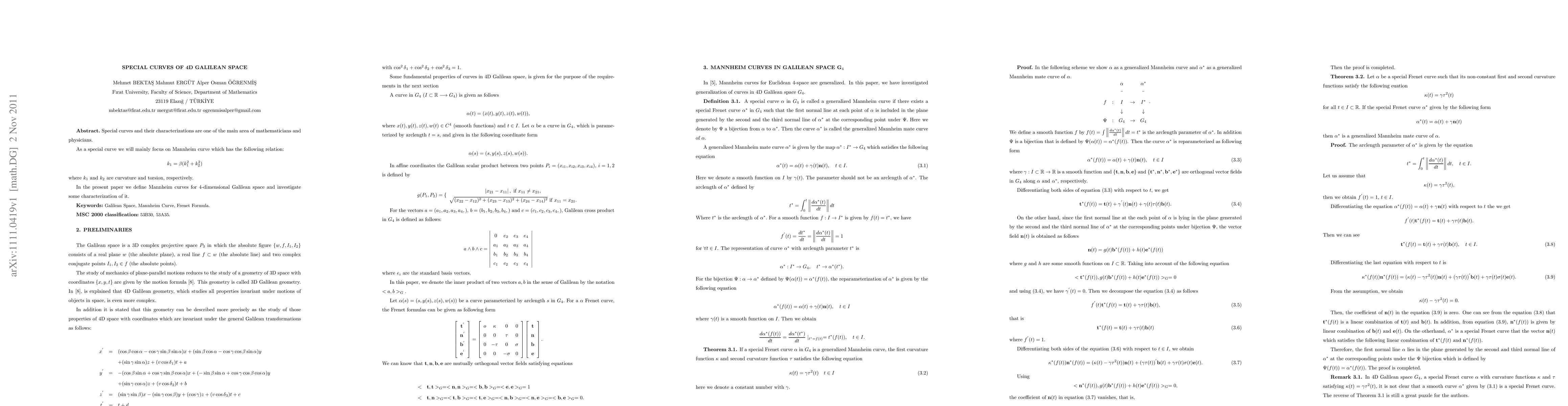 This paper defines Mannheim curves in 4-dimensional Galilean space, characterized by the relation k1={\beta}(k1^2+k2), where k1 and k2 are curvature and torsion, respectively, and explores their properties.