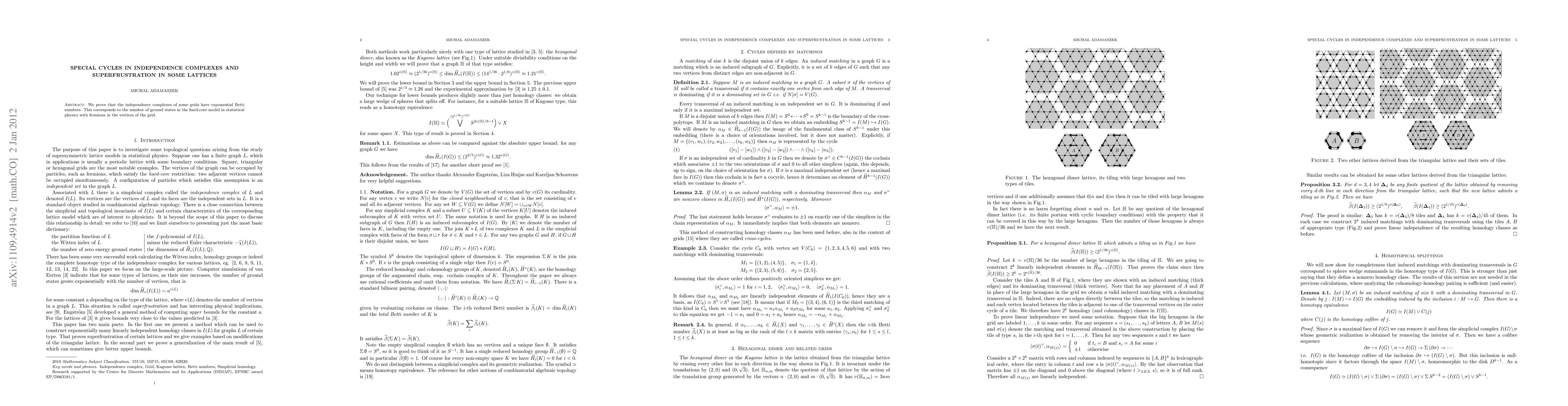 This paper demonstrates that the independence complexes of certain grid structures exhibit exponential Betti numbers, which correlate to the number of ground states in the hard-core model in statistical physics involving fermions on grid vertices. The study highlights the complex superfrustration dynamics within these lattices.