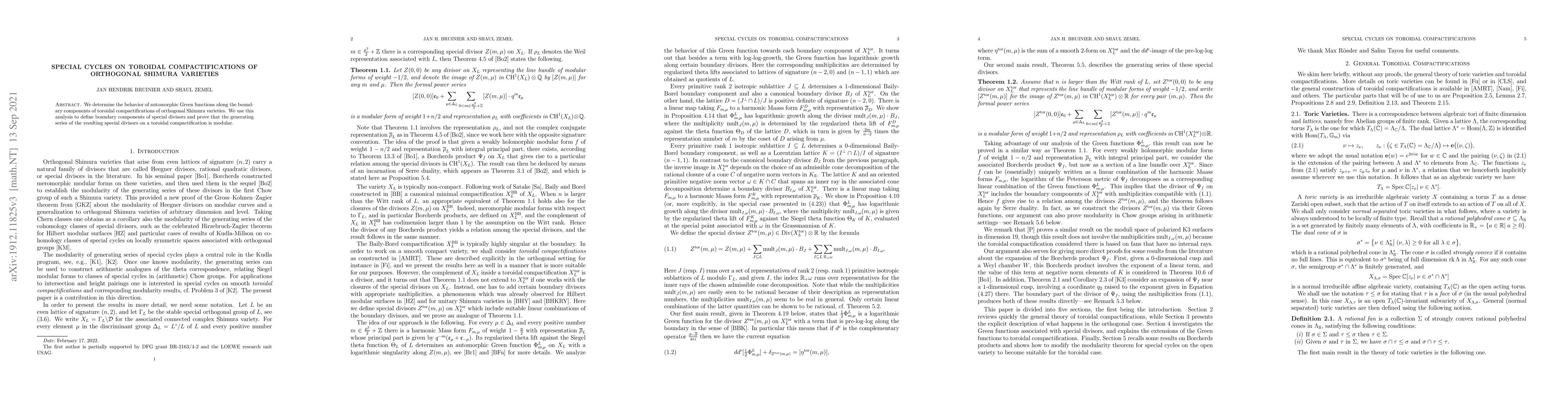 Summary: This paper investigates the behavior of automorphic Green functions on toroidal compactifications of orthogonal Shimura varieties, defining special divisors on their boundary components and proving the modularity of their generating series.