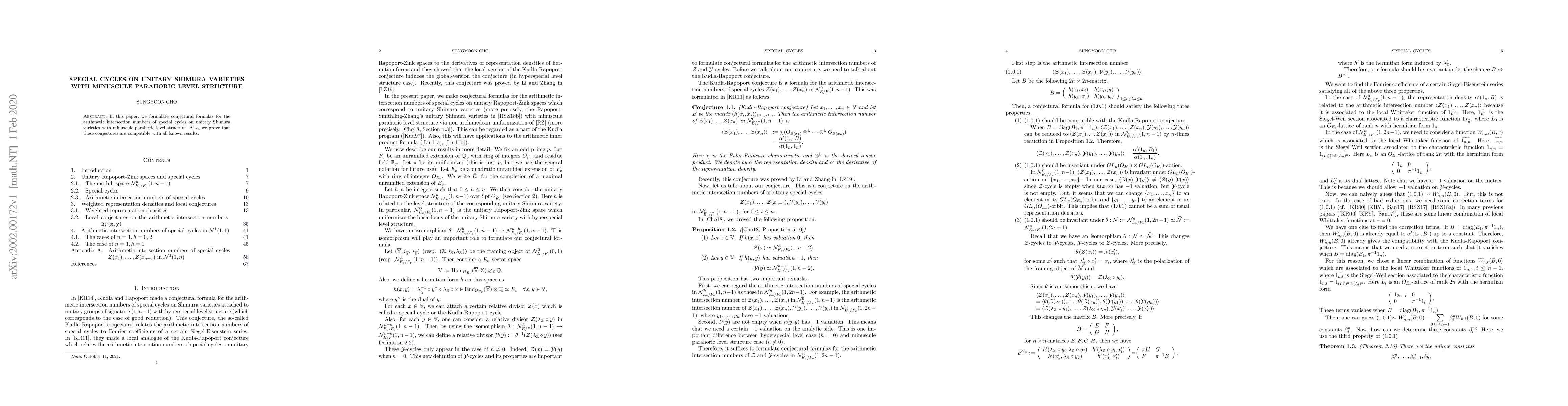 This paper proposes conjectures for arithmetic intersection numbers of special cycles on unitary Shimura varieties with minuscule parahoric level structure and demonstrates the compatibility of these conjectures with existing results.