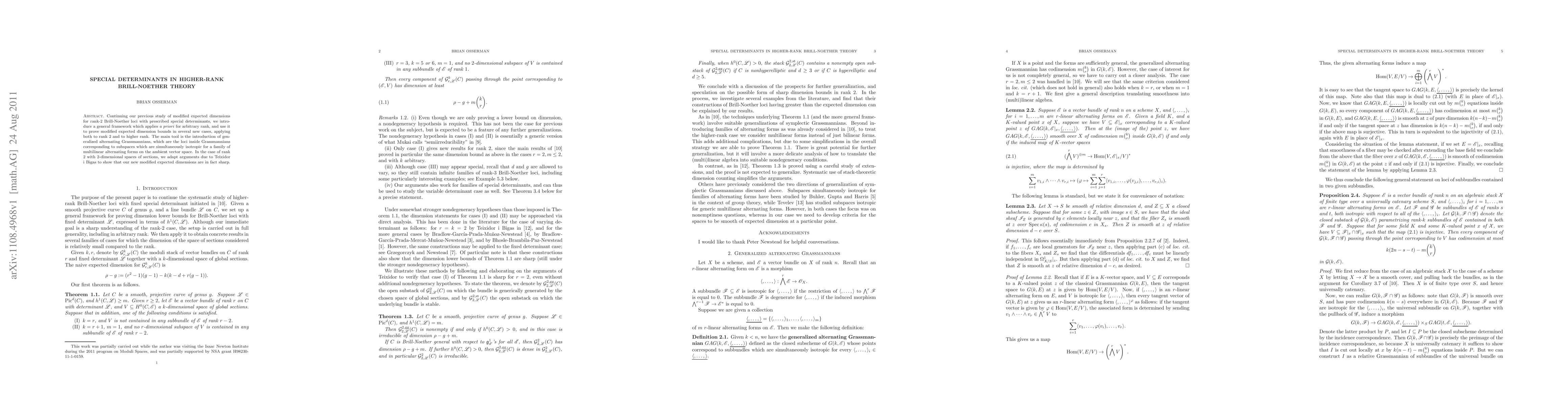 Continuing our previous study of modified expected dimensions for rank-2 Brill-Noether loci with prescribed special determinants, we introduce a general framework which applies a priori for arbitrary rank, and use it to prove modified expected dimension bounds in several new cases, applying both to rank 2 and to higher rank. The main tool is the introduction of generalized alternating Grassmannians, which are the loci inside Grassmannians corresponding to subspaces which are simultaneously isotropic for a family of multilinear alternating forms on the ambient vector space. In the case of rank 2 with 2-dimensional spaces of sections, we adapt arguments due to Teixidor i Bigas to show that our new modified expected dimensions are in fact sharp.