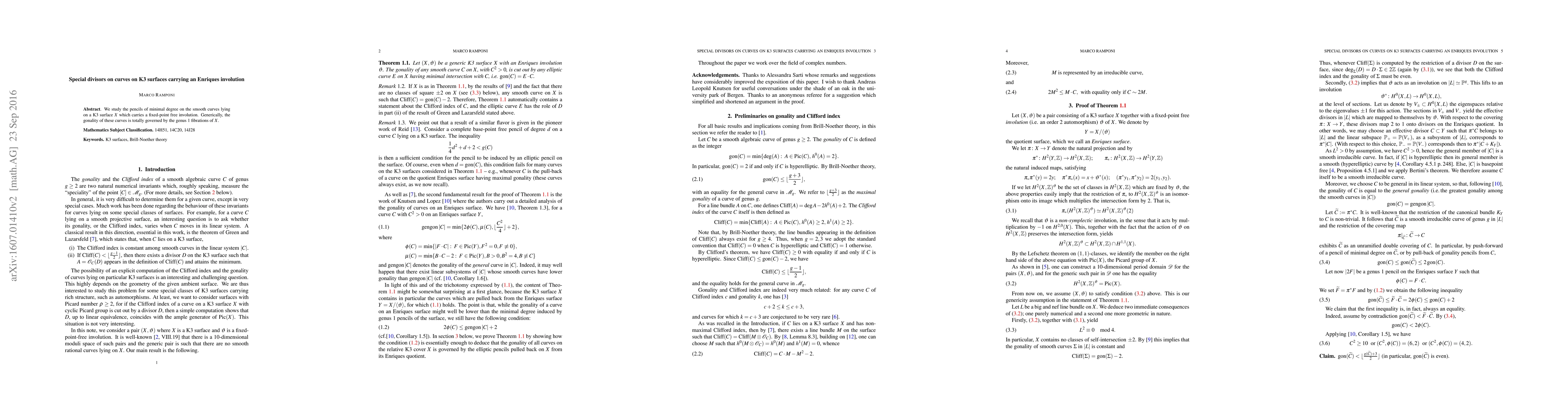 We study the pencils of minimal degree on the smooth curves lying on a K3 surface X which carries a fixed-point free involution. Generically, the gonality of these curves is totally governed by the genus 1 fibrations of X