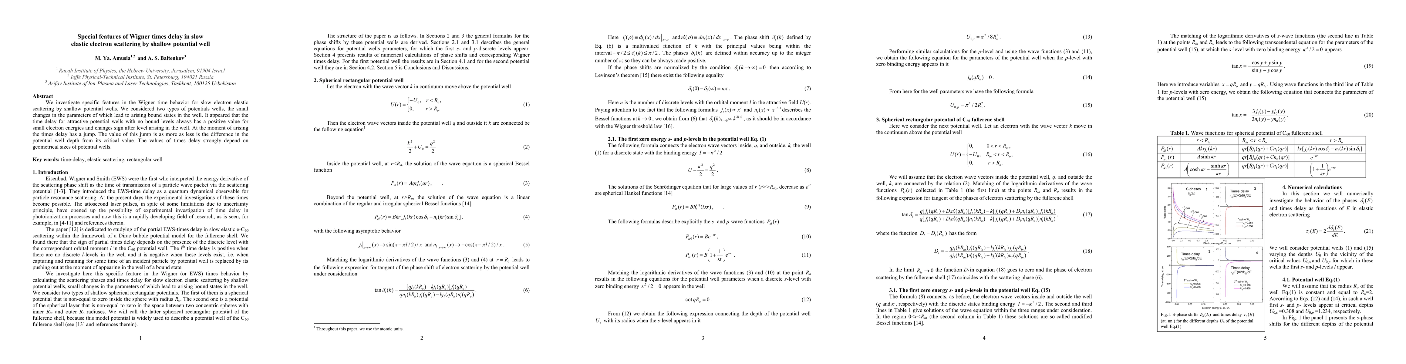 The study examines how Wigner time delay changes in slow elastic electron scattering off shallow potential wells, revealing that the delay is positive for low energy electrons, jumps at level emergence, and varies with well depth and size.
