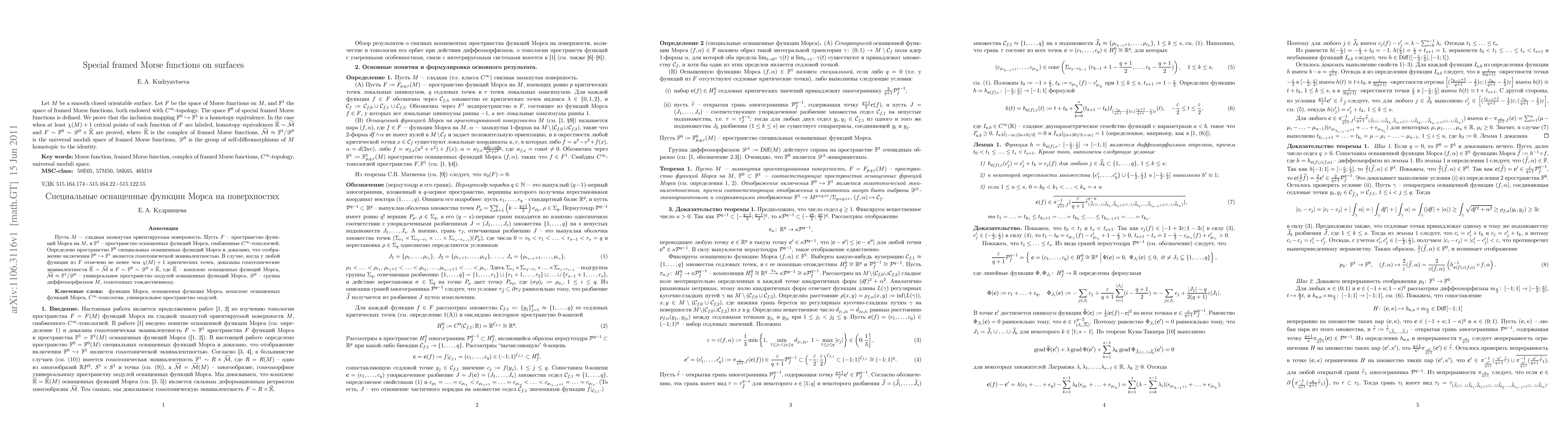 Let $M$ be a smooth closed orientable surface. Let $F$ be the space of Morse functions on $M$, and $\mathbb{F}^1$ the space of framed Morse functions, both endowed with $C^\infty$-topology. The space $\mathbb{F}^0$ of special framed Morse functions is defined. We prove that the inclusion mapping $\mathbb{F}^0\hookrightarrow\mathbb{F}^1$ is a homotopy equivalence. In the case when at least $\chi(M)+1$ critical points of each function of $F$ are labeled, homotopy equivalences $\mathbb{\widetilde K}\sim\widetilde{\cal M}$ and $F\sim\mathbb{F}^0\sim{\mathscr D}^0\times\mathbb{\widetilde K}$ are proved, where $\mathbb{\widetilde K}$ is the complex of framed Morse functions, $\widetilde{\cal M}\approx\mathbb{F}^1/{\mathscr D}^0$ is the universal moduli space of framed Morse functions, ${\mathscr D}^0$ is the group of self-diffeomorphisms of $M$ homotopic to the identity.