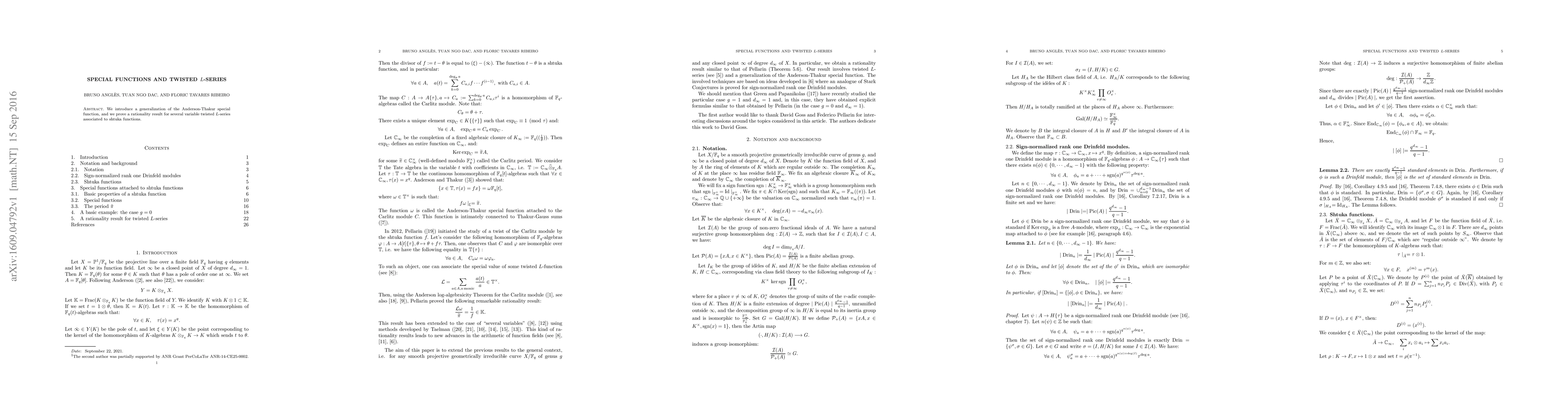 This paper introduces a generalization of the Anderson-Thakur special function and proves rationality for several twisted $L$-series associated with shtuka functions, providing new insights into number theory.