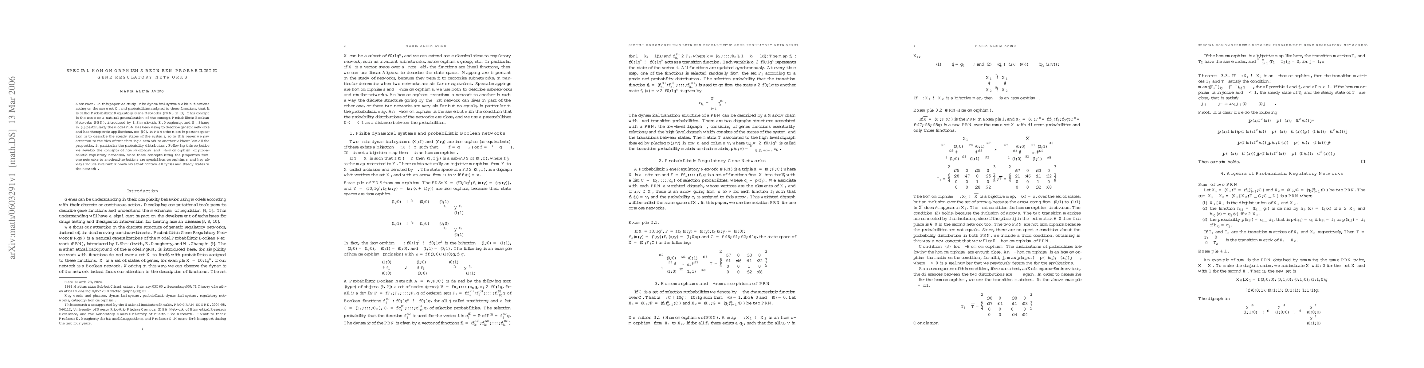 This paper studies Probabilistic Gene Regulatory Networks (PRN) and develops concepts of homomorphism and ε-homomorphism to transform networks while preserving properties, particularly probability distributions. It aims to improve understanding and analysis of genetic networks with therapeutic applications.