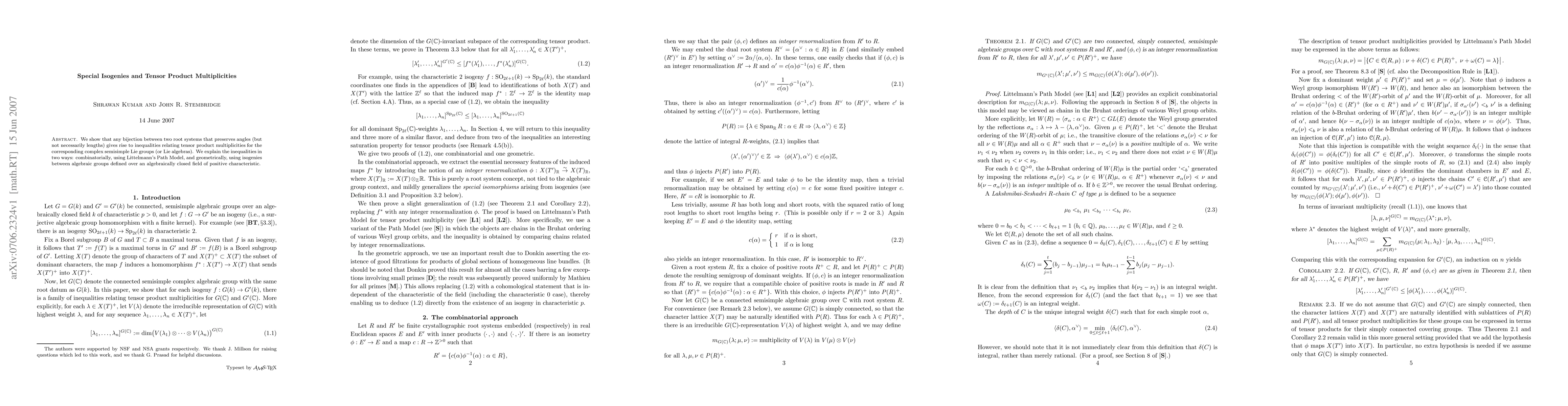 This paper demonstrates that bijections preserving angles between root systems induce inequalities on tensor product multiplicities for complex semisimple Lie groups, explained both combinatorially via Littelmann's Path Model and geometrically through isogenies in positive characteristic.