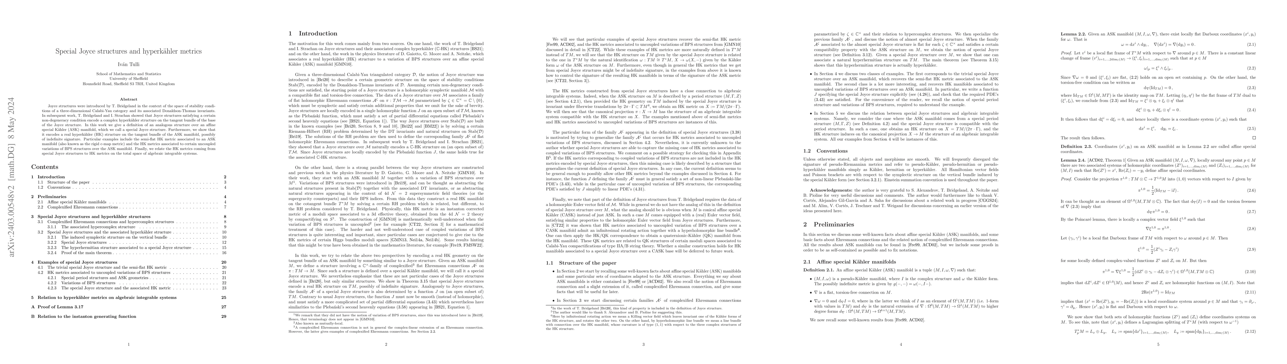 This paper introduces special Joyce structures over affine special Kähler manifolds, analogous to Joyce structures in three-dimensional Calabi-Yau categories. It demonstrates that these structures encode real hyperkähler structures on the tangent bundles of these manifolds, potentially with indefinite signature, and connects them to integrable systems.