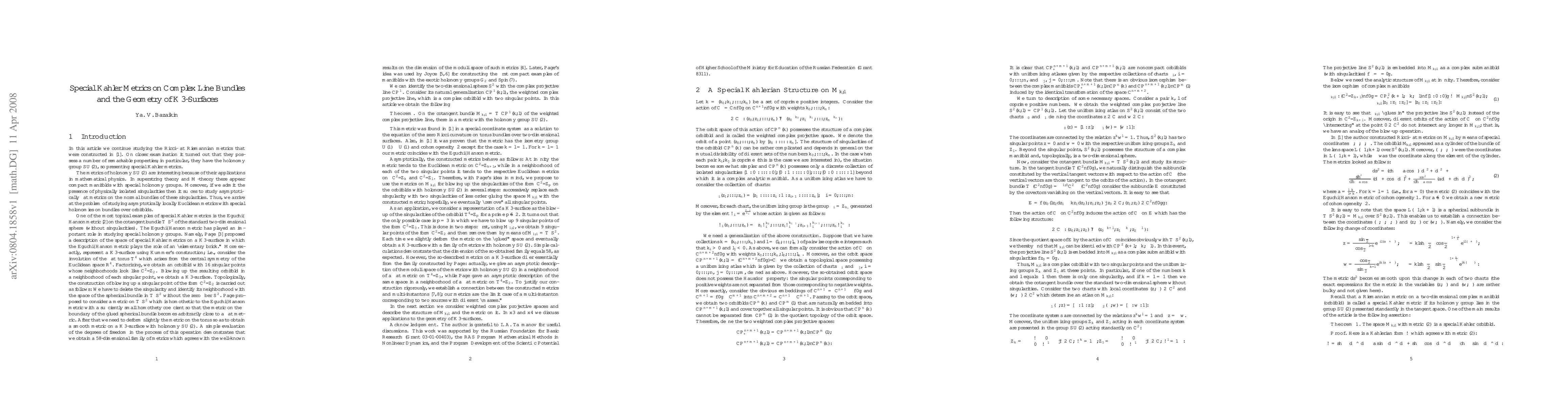 This paper constructs SU(2) holonomy metrics on the tangent bundles of weighted complex projective lines and describes the moduli space of special Kähler metrics on K3-surfaces near the flat orbifold $T^4/Z_3$. The findings provide geometric insights into the structure of K3 surfaces.