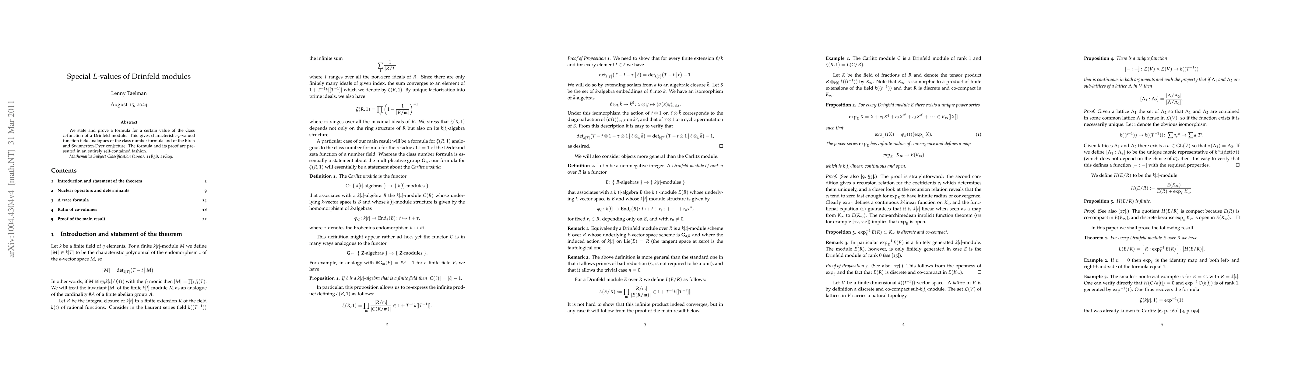 Researchers prove a formula for a specific value of the Goss L-function of Drinfeld modules, giving characteristic-p-valued function field analogues of class number formulas and the Birch and Swinnerton-Dyer conjecture.
