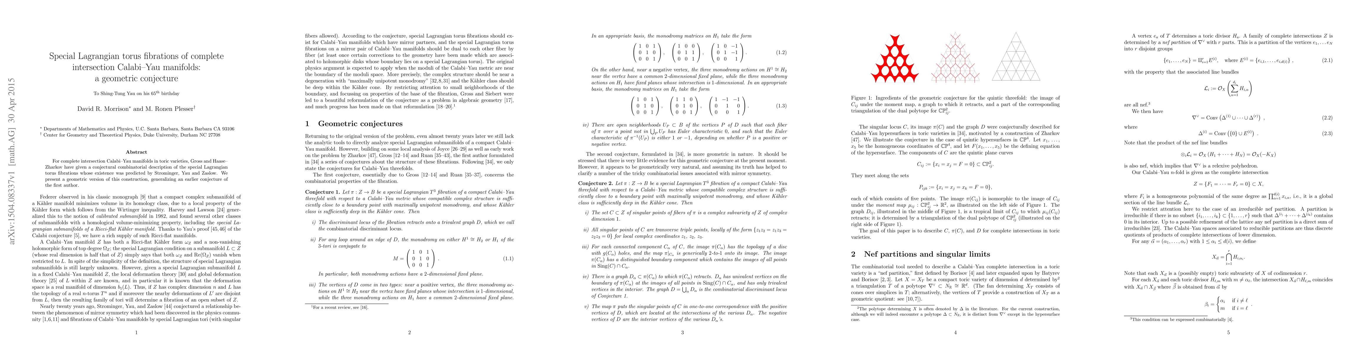 For complete intersection Calabi-Yau manifolds in toric varieties, Gross and Haase-Zharkov have given a conjectural combinatorial description of the special Lagrangian torus fibrations whose existence was predicted by Strominger, Yau and Zaslow. We present a geometric version of this construction, generalizing an earlier conjecture of the first author.