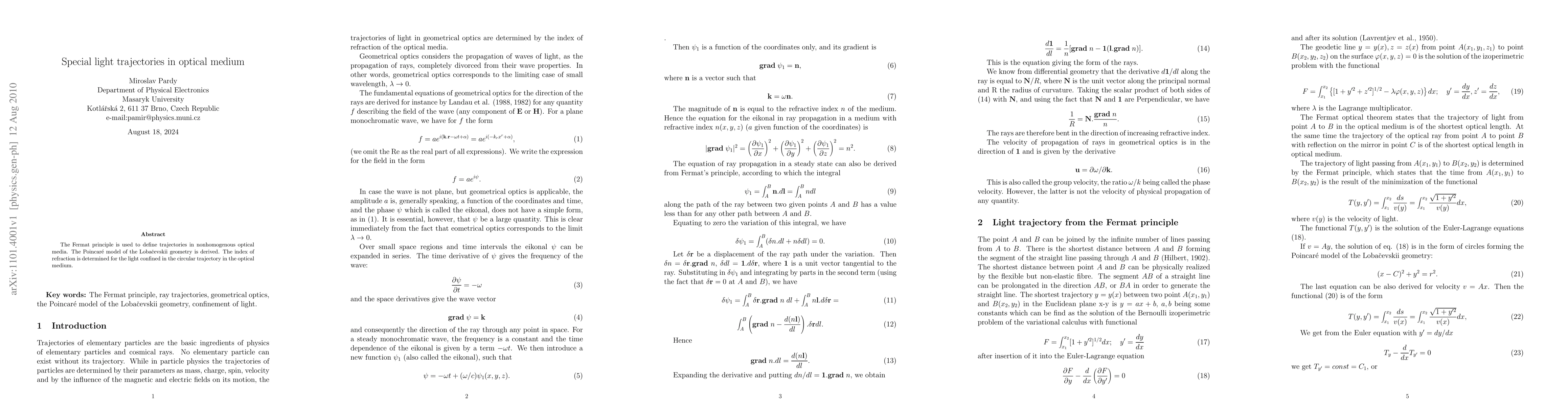 The Fermat principle is used to define trajectories in nonhomogenous optical media. The Poincare model of the Lobachevskii geometry is derived. The index of refraction is determined for the light confined in the circular trajectory in the optical medium.