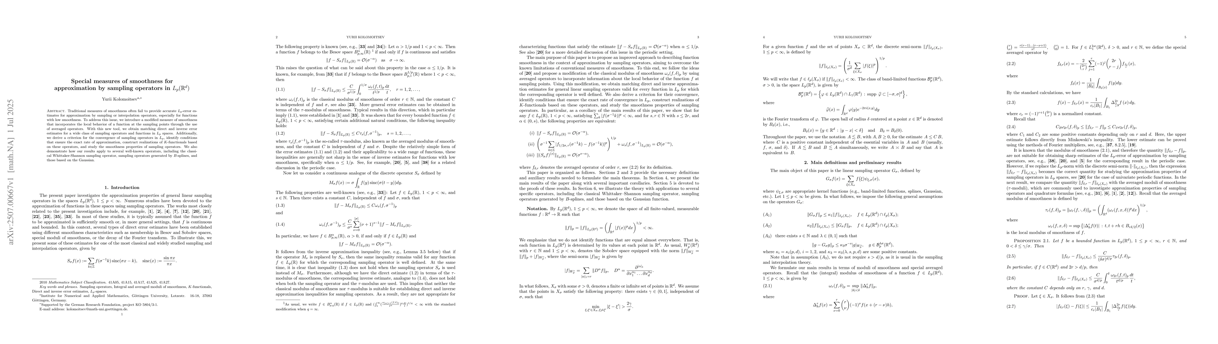 Traditional measures of smoothness often fail to provide accurate $L_p$-error estimates for approximation by sampling or interpolation operators, especially for functions with low smoothness. To address this issue, we introduce a modified measure of smoothness that incorporates the local behavior of a function at the sampling points through the use of averaged operators. With this new tool, we obtain matching direct and inverse error estimates for a wide class of sampling operators and functions in $L_p$ spaces. Additionally, we derive a criterion for the convergence of sampling operators in $L_p$, identify conditions that ensure the exact rate of approximation, construct realizations of $K$-functionals based on these operators, and study the smoothness properties of sampling operators. We also demonstrate how our results apply to several well-known operators, including the classical Whittaker-Shannon sampling operator, sampling operators generated by $B$-splines, and those based on the Gaussian.