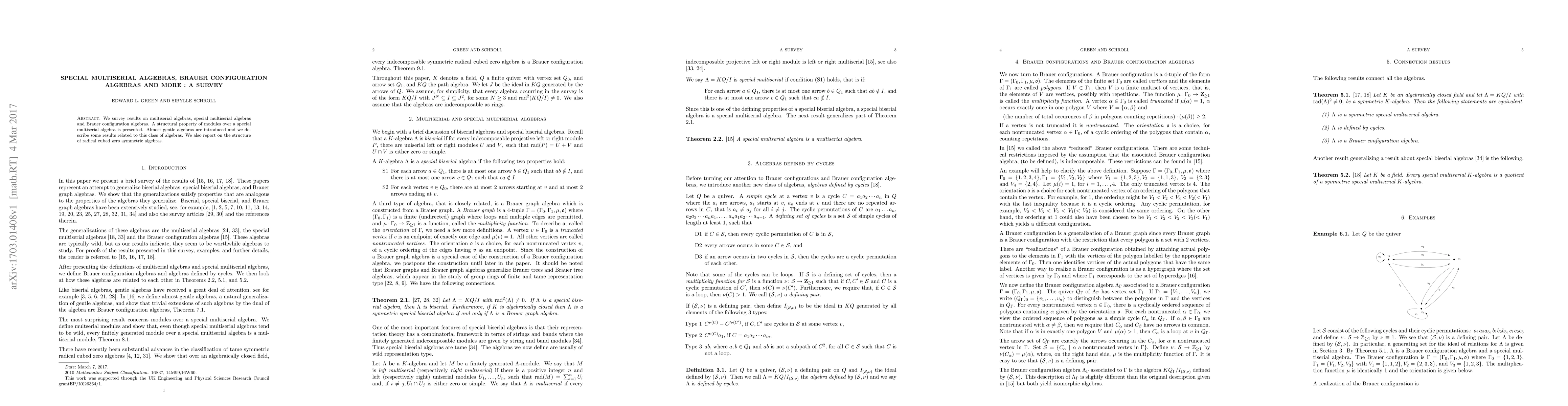 We survey results on multiserial algebras, special multiserial algebras and Brauer configuration algebras. A structural property of modules over a special multiserial algebra is presented. Almost gentle algebras are introduced and we describe some results related to this class of algebras. We also report on the structure of radical cubed zero symmetric algebras.