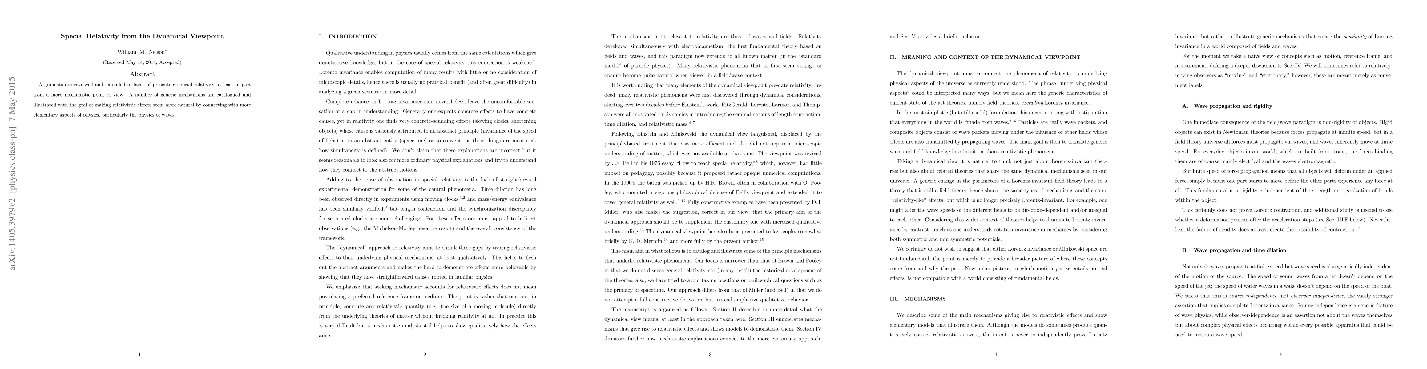 Arguments are reviewed and extended in favor of presenting special relativity at least in part from a more mechanistic point of view. A number of generic mechanisms are catalogued and illustrated with the goal of making relativistic effects seem more natural by connecting with more elementary aspects of physics, particularly the physics of waves.