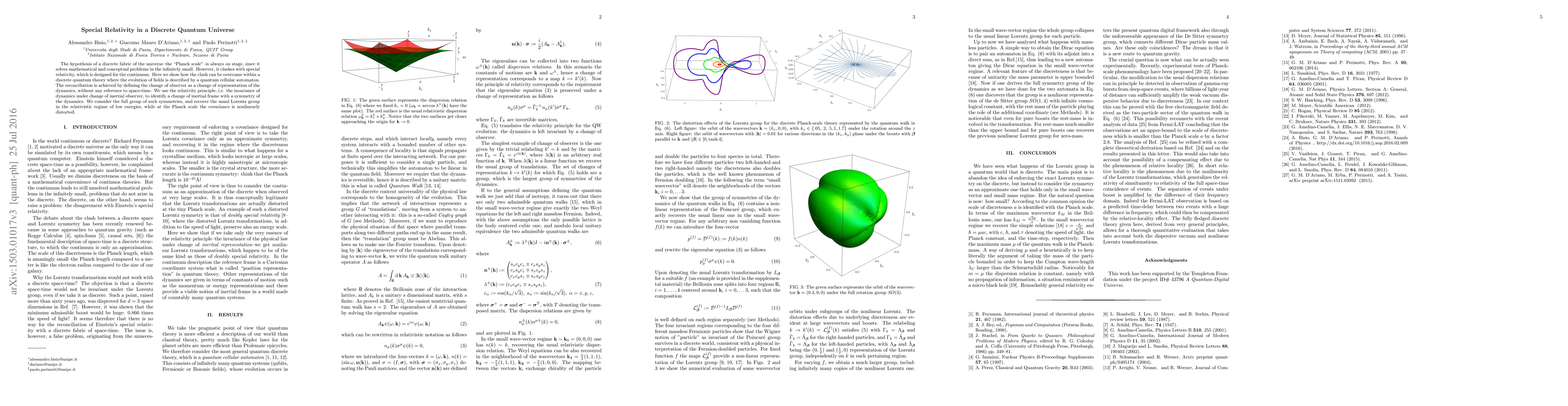 The hypothesis of a discrete fabric of the universe--the "Planck scale"--is always on stage, since it solves mathematical and conceptual problems in the infinitely small. However, it clashes with special relativity, which is designed for the continuum. Here we show how the clash can be overcome within a discrete quantum theory where the evolution of fields is described by a quantum cellular automaton. The reconciliation is achieved by defining the change of observer as a change of representation of the dynamics, without any reference to space-time. We use the relativity principle, i.e. the invariance of dynamics under change of inertial observer, to identify a change of inertial frame with a symmetry of the dynamics. We consider the full group of such symmetries, and recover the usual Lorentz group in the relativistic regime of low energies, while at the Planck scale the covariance is nonlinearly distorted.