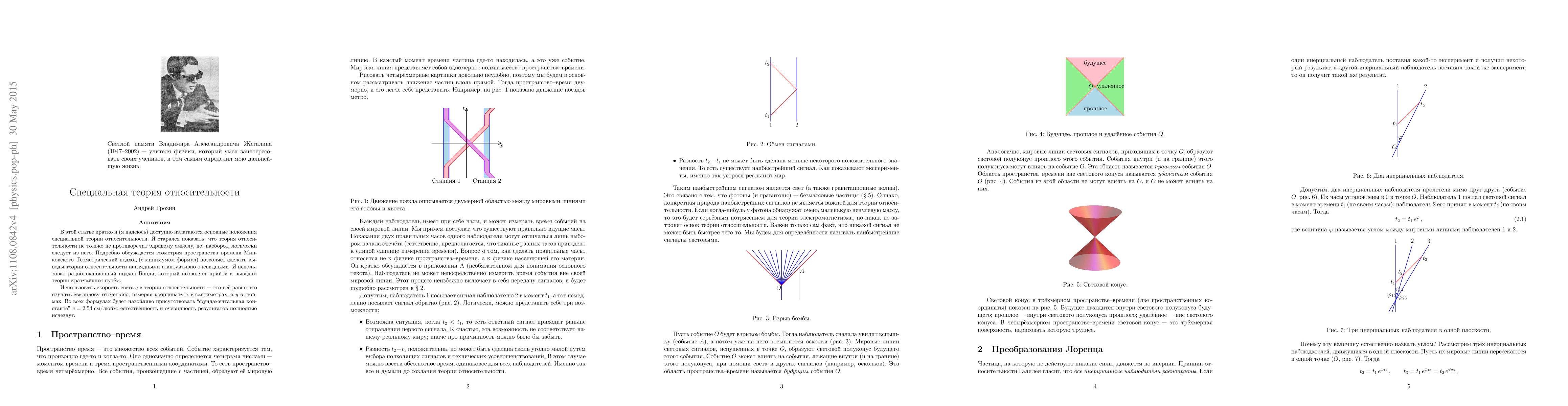A modern elementary introduction to special relativity for advanced school children or first-year university students, in Russian. I try to demonstrate that relativity does not contradict common sense; on the contrary, it follows from common sense logically. I discuss Minkowski space-time geometry in some detail. Geometrical approach, with few simple formulas but many pictures, makes results of the theory intuitively obvious.