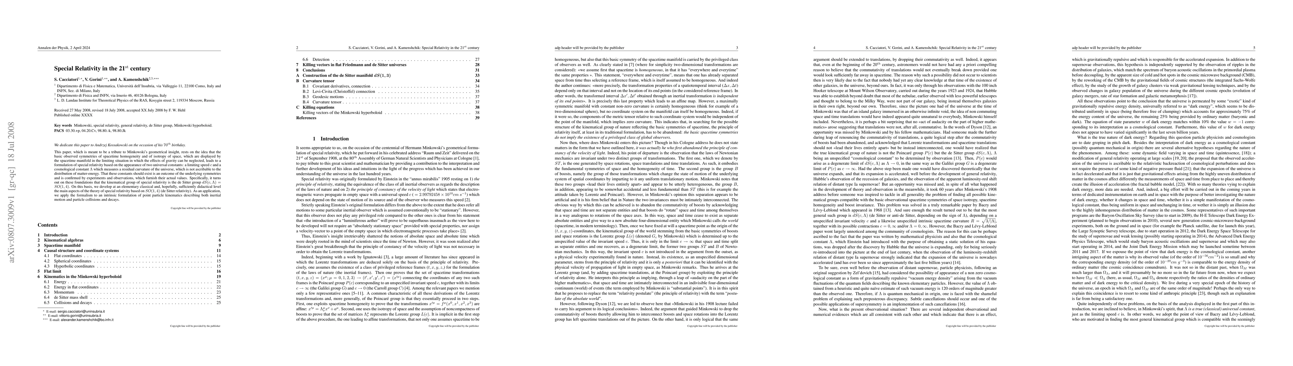 This paper, which is meant to be a tribute to Minkowski's geometrical insight, rests on the idea that the basic observed symmetries of spacetime homogeneity and of isotropy of space, which are displayed by the spacetime manifold in the limiting situation in which the effects of gravity can be neglected, leads to a formulation of special relativity based on the appearance of two universal constants: a limiting speed $c$ and a cosmological constant $\Lambda$ which measures a residual curvature of the universe, which is not ascribable to the distribution of matter-energy. That these constants should exist is an outcome of the underlying symmetries and is confirmed by experiments and observations, which furnish their actual values. Specifically, it turns out on these foundations that the kinematical group of special relativity is the de Sitter group $dS(c,\Lambda)=SO(1,4)$. On this basis, we develop at an elementary classical and, hopefully, sufficiently didactical level the main aspects of the theory of special relativity based on SO(1,4) (de Sitter relativity). As an application, we apply the formalism to an intrinsic formulation of point particle kinematics describing both inertial motion and particle collisions and decays.