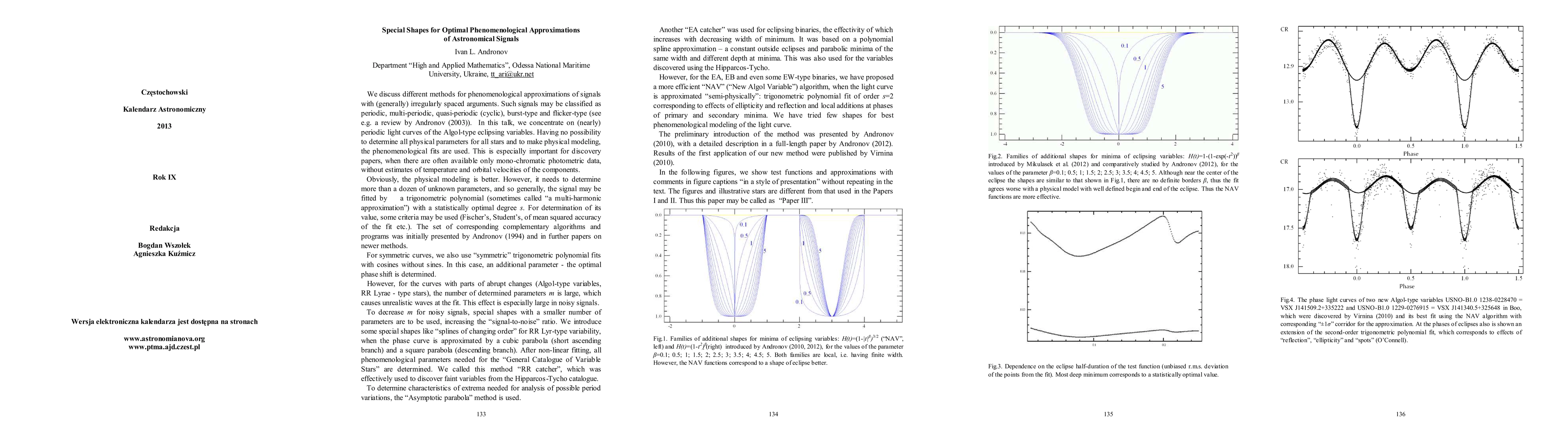 We discuss different methods for phenomenological approximations of signals with (generally) irregularly spaced arguments. Such signals may be classified as periodic, multi-periodic, quasi-periodic (cyclic), burst-type and flicker-type (see e.g. a review by Andronov (2003)). In this talk, we concentrate on (nearly) periodic light curves of the Algol-type eclipsing variables. Having no possibility to determine all physical parameters for all stars and to make physical modeling, the phenomenological fits are used. This is especially important for discovery papers, when there are often available only mono-chromatic photometric data, without estimates of temperature and orbital velocities of the components.