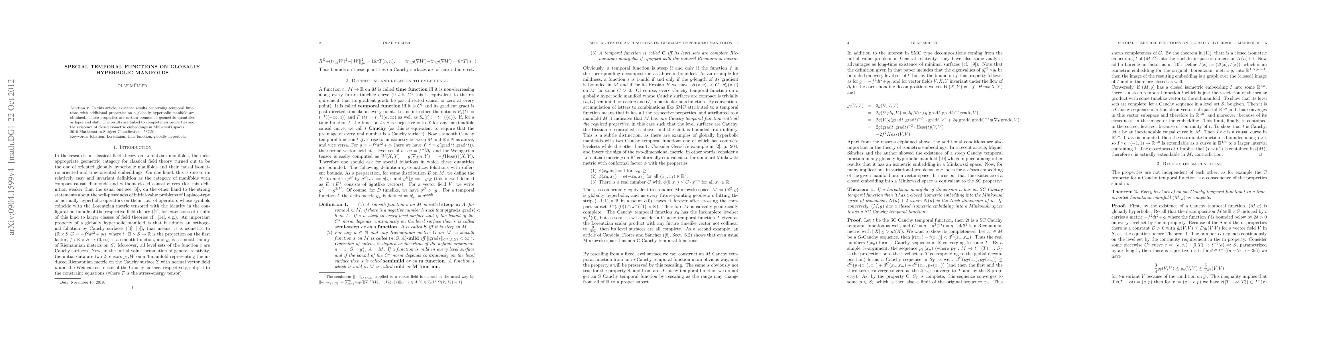 In this article, existence results concerning temporal functions with additional properties on a globally hyperbolic manifold are obtained. These properties are certain bounds on geometric quantities as lapse and shift. The results are linked to completeness properties and the existence of closed isometric embeddings in Minkowski spaces.