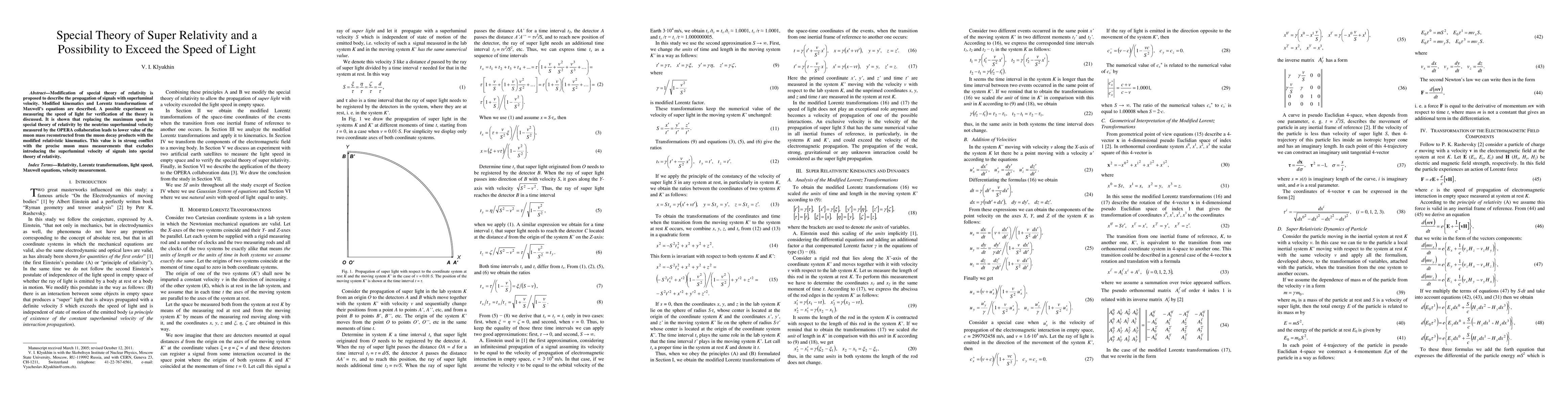 Modification of special theory of relativity is proposed to describe the propagation of signals with superluminal velocity. Modified kinematics and Lorentz transformations of Maxwell's equations are described. A possible experiment on measuring the speed of light for verification of the theory is discussed. It is shown that replacing the maximum speed in special theory of relativity by the neutrino superluminal velocity measured by the OPERA collaboration leads to lower value of the muon mass reconstructed from the muon decay products with the modified relativistic kinematics. This value is in strong conflict with the precise muon mass measurements that excludes introducing the superluminal velocity of signals into special theory of relativity.