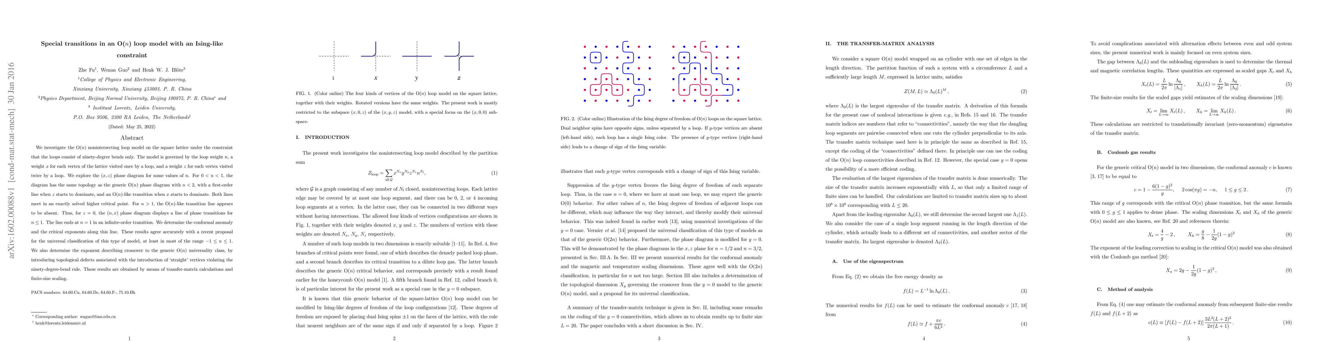 by a loop. We explore the $(x,z)$ phase diagram for some values of $n$. For